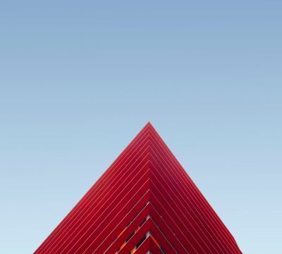 Moderne rote Architektur vor blauem Himmel Moderne rote Architektur vor blauem Himmel